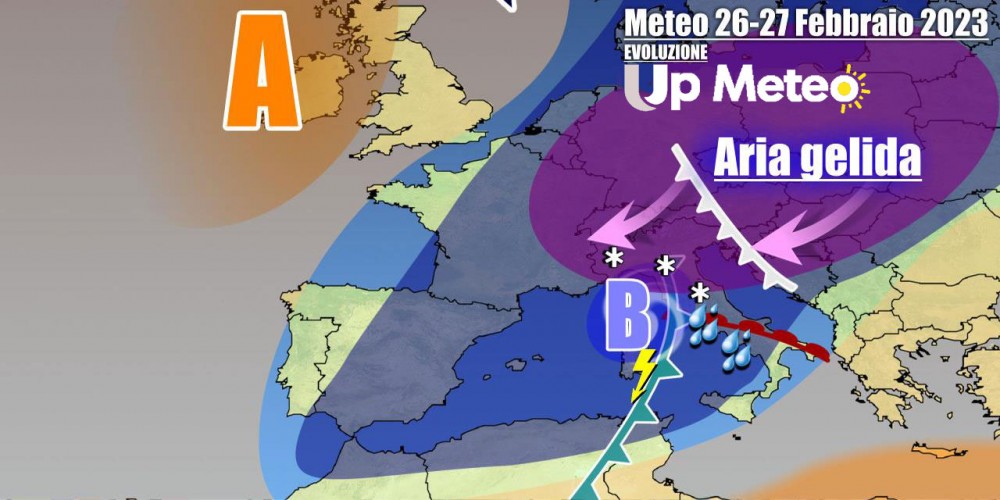 Domenica 26 Febbraio: maltempo più diffuso, arriva neve a bassa quota o in pianura dalla sera su Emilia, Piemonte, settori toscani ed entroterra marchigiano.