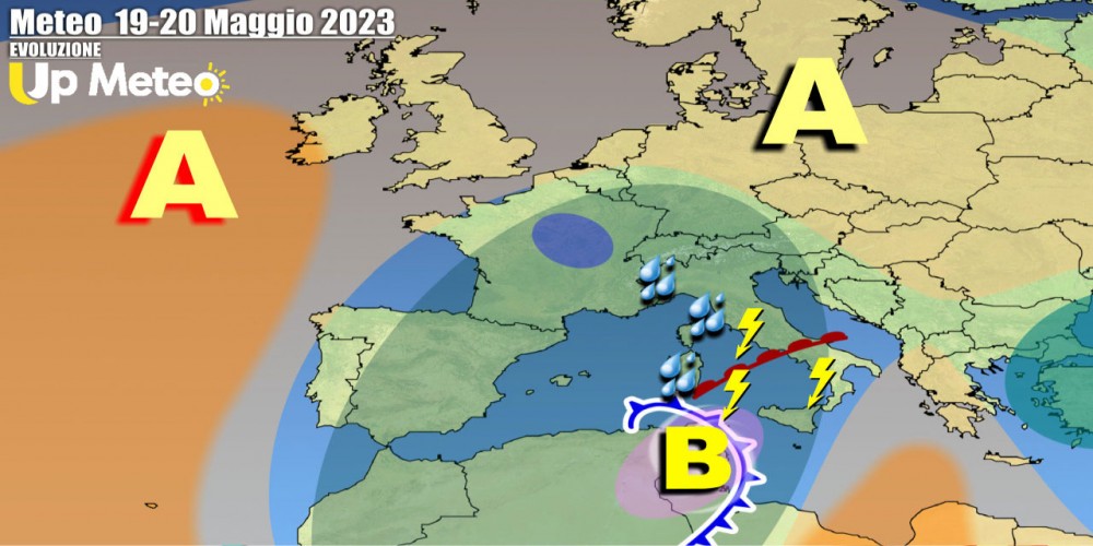 La circolazione atmosferica resterà piuttosto ingarbugliata per molti giorni, stante la persistenza di un’ampia sacca depressionaria in sede mediterranea contrapposta all’anticiclone delle Azzorre alto di latitudine. Questa fase perturbata ha caratteristiche più tipiche dell’autunno che della tarda primavera, ma è tutto Maggio segnato da un’eccezionale anomalia.