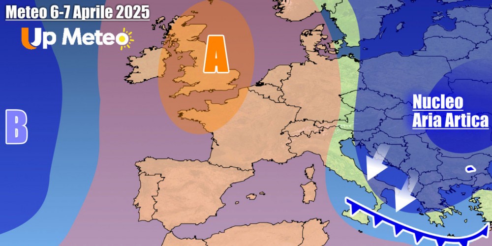 Domenica 6 Aprile: il fronte freddo artico dilagherà sulla Penisola, con rovesci diffusi in rotta specie verso il Centro-Sud e neve in Appennino fin sotto i 1000 metri. Forte calo termico e vento.