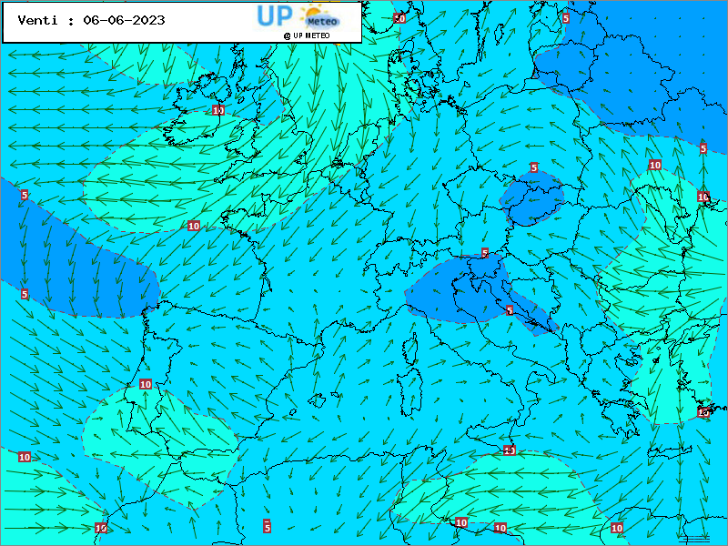 Questa mappa rappresenta direzione e intensità del vento al suolo. Velocità in nodi (knots)