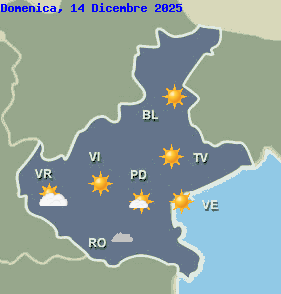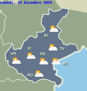 Domenica, regime di alta pressione sulla regione. La giornata sarà contraddistinta ancora una volta da generali condizioni di bel tempo. Il cielo sarà spesso sereno sui settori montuosi e vicine pianure, nubi e possibili nebbie anche fitte sulle zone pianeggianti. Temperature grossomodo stabili.
